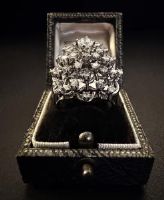 Questo anello, di grandi dimensioni e dal design traforato, incarna lo spirito audace e raffinato di un’epoca che amava gioielli scenografici e ricchi di personalità.