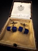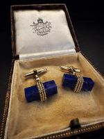 Immergiti nel fascino di questi straordinari gemelli in oro giallo 14 carati e lapislazzuli naturale, autentici simboli di eleganza e storia.