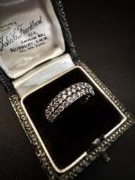 • La montatura a pavé, composta da tre file di diamanti, disegna una superficie luminosa e setosa, dove ogni pietra è incastonata con cura, in modo continuo e raffinato.
