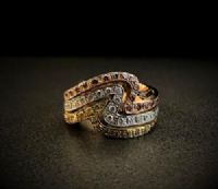Anello a Fascia in Oro Tricolore con Diamanti Fancy – Capolavoro di Eleganza e Creatività Italiana