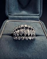 Anello Fascia in Oro Bianco con Diamanti Marquise e Brillanti – Icona di Lusso Anni '60
